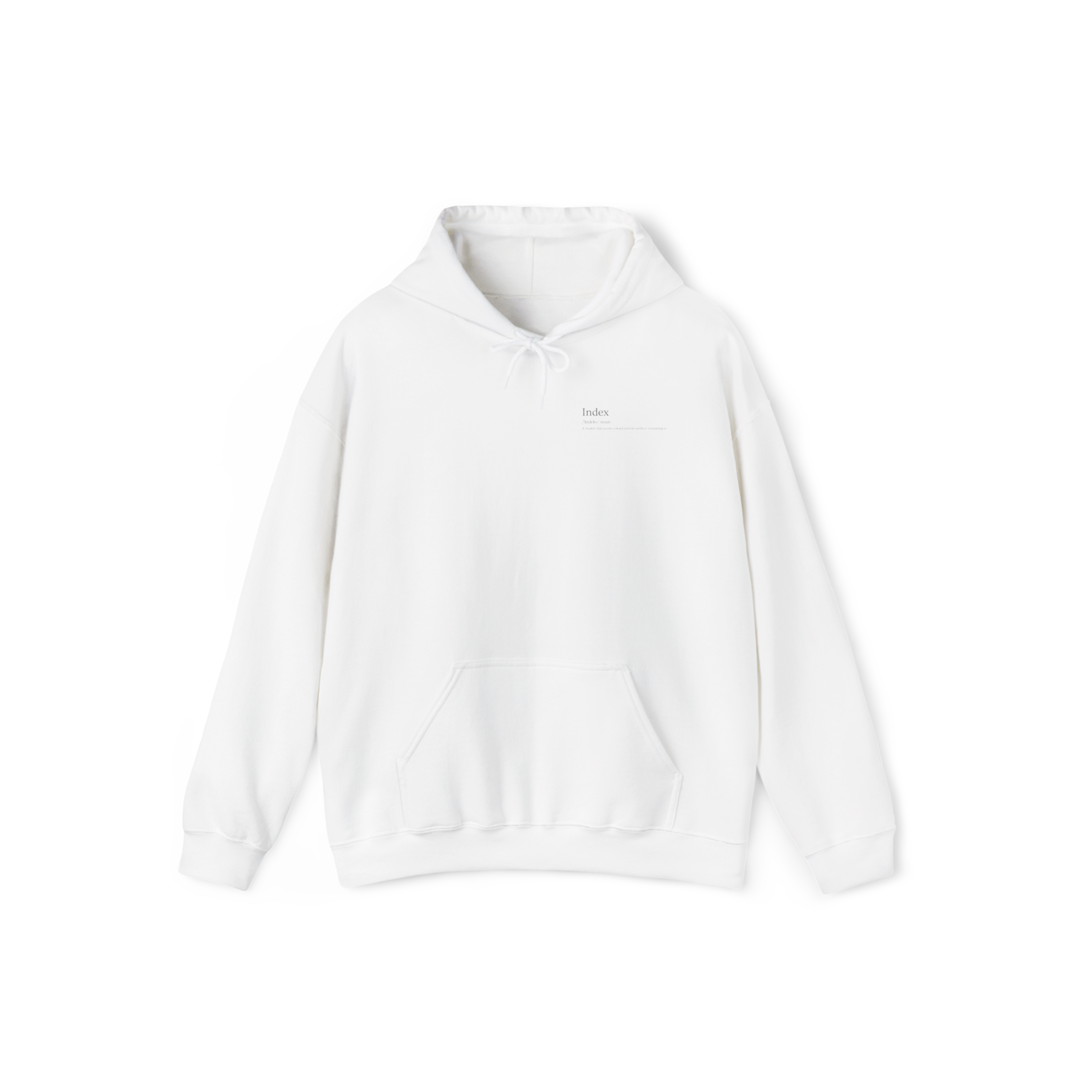 Pure white. Gray marker fixed with surgical restraint on the chest. A coded reference to identity suggested, never stated. It signals without demanding notice. The implication does the rest.
